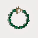 SOVANA, bracciale realizzato interamente a mano in acciaio chirurgico, disponibile sia nella versione in argento che nella versione placcata in oro 18k. È composto da pietre naturali di Giada verde sferiche alternate in due diverse dimensioni, è inoltre possibile scegliere tra due chiusure diverse.