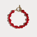 SIERRA, bracciale realizzato interamente a mano in acciaio chirurgico, disponibile sia nella versione in argento che nella versione placcata in oro 18k. È composto da pietre naturali di Agata rosso rubino sferiche alternate in due diverse dimensioni, è inoltre possibile scegliere tra due chiusure diverse.