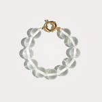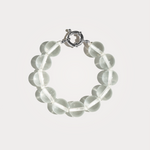 SOLAVITA, bracciale realizzato interamente a mano in acciaio chirurgico, disponibile sia nella versione in argento che nella versione placcata in oro 18k. È composto da pietre naturali di Cristallo di Rocca trasparenti e sferiche