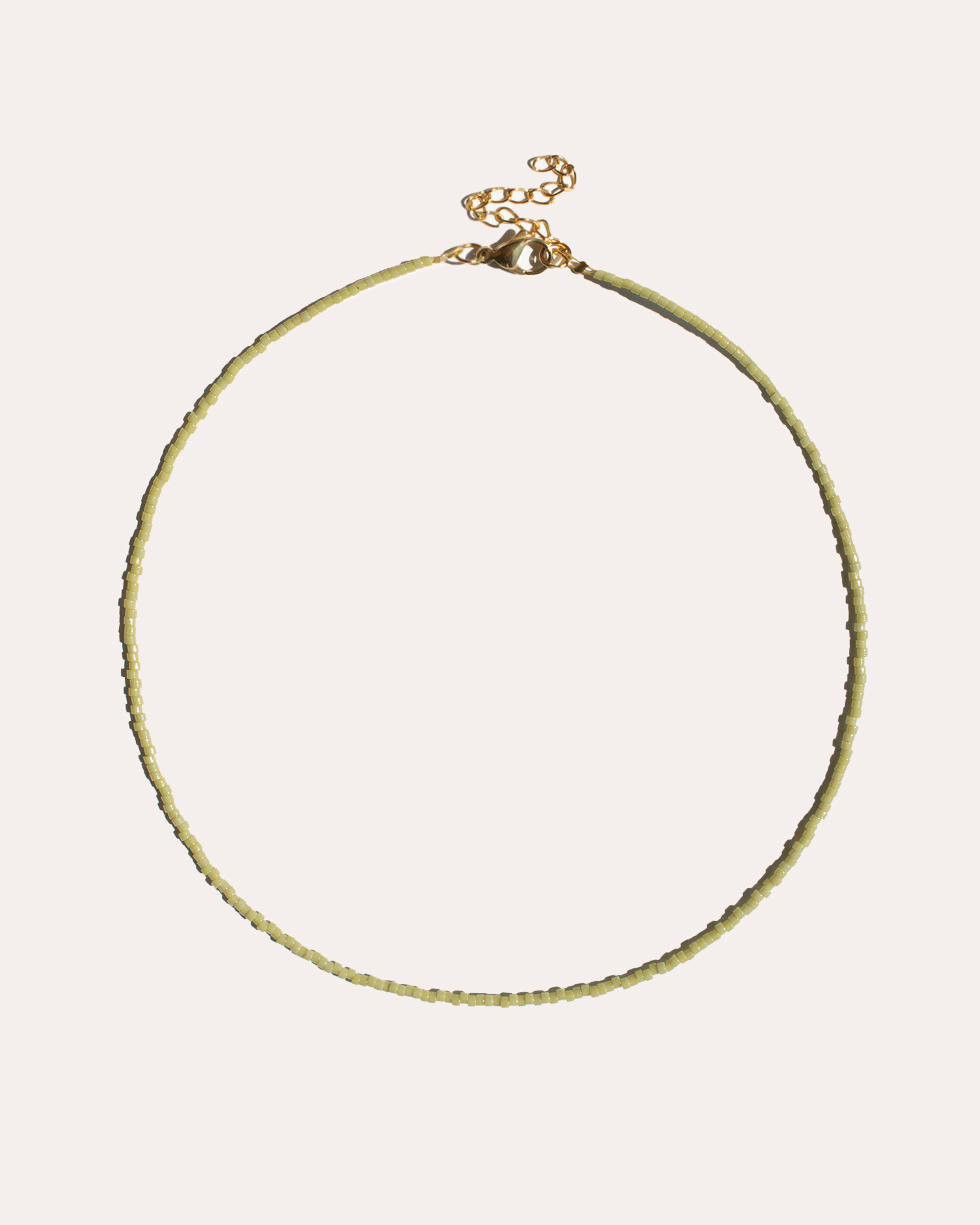 MINI MARINA, collana realizzata interamente a mano in acciaio chirurgico, disponibile sia nella versione in argento che nella versione placcata in oro 18k. È composta da piccole perline di vetro colorate ed è disponibile in 3 colori diversi.