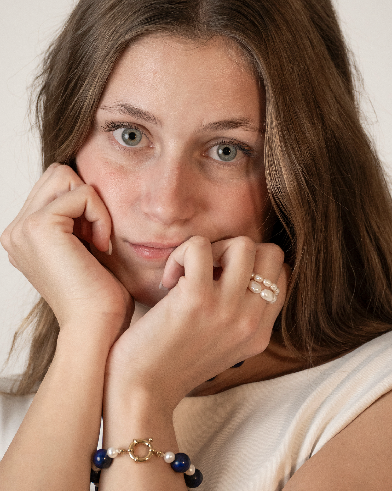 Each piece is individually handcrafted and made-to-order, valuing each unique detail, with a process that involves the careful selection of each pearl and stone.